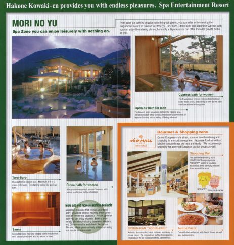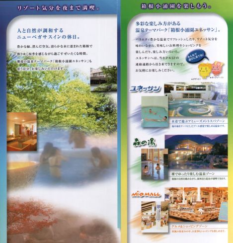 | 総合評価 | ○ | 箱根にあるのでちょっと一風呂という軽い気持ちで行けないのが残念ですが、温泉レジャーとしては満点です。例え日帰りでも、高速代、入場料、お食事台などで1万では足りないですが、満足度は確かです。 |